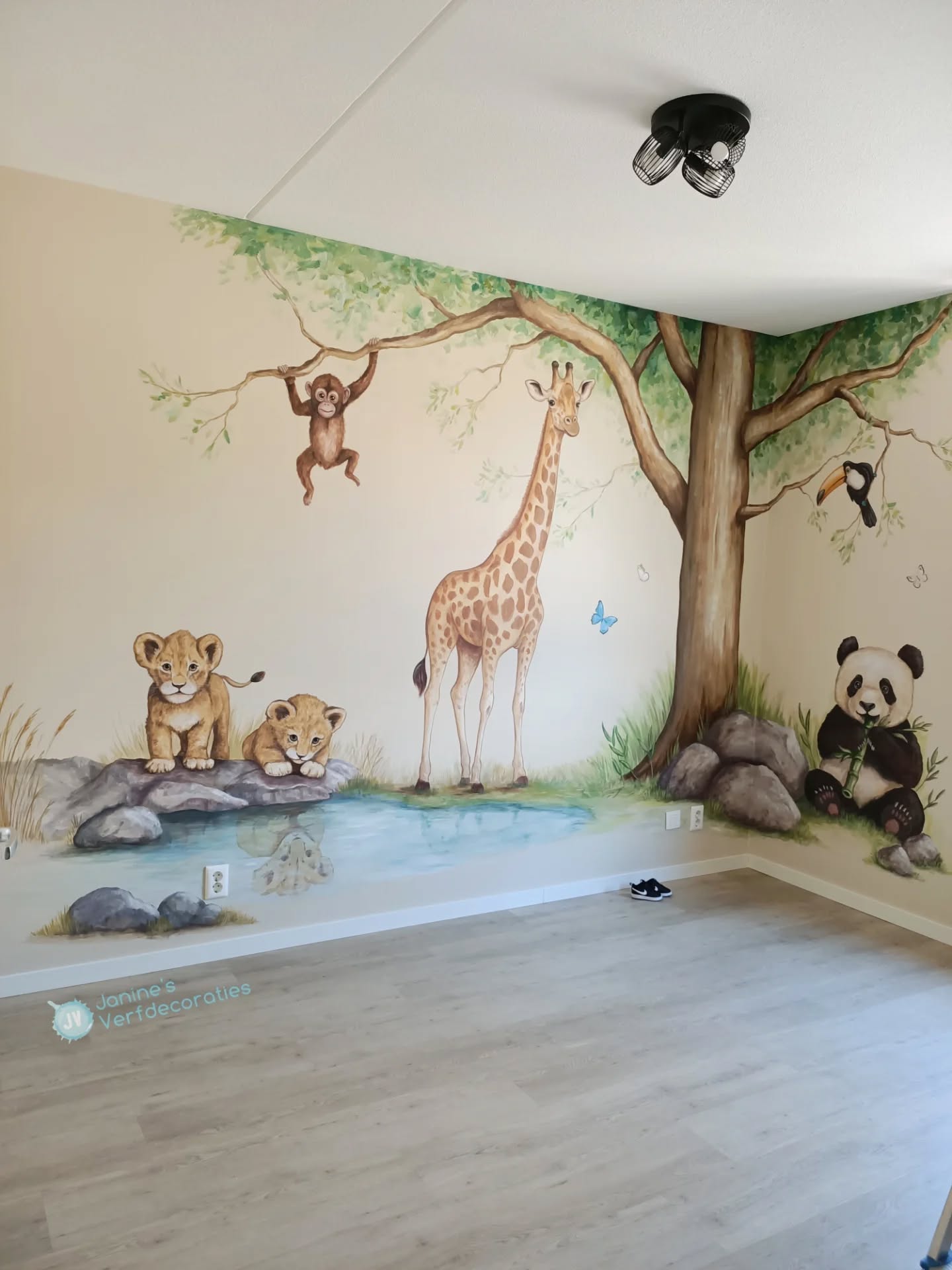 #Muurschildering #babykamer #JaninesVerfdecoraties #dieren #giraf