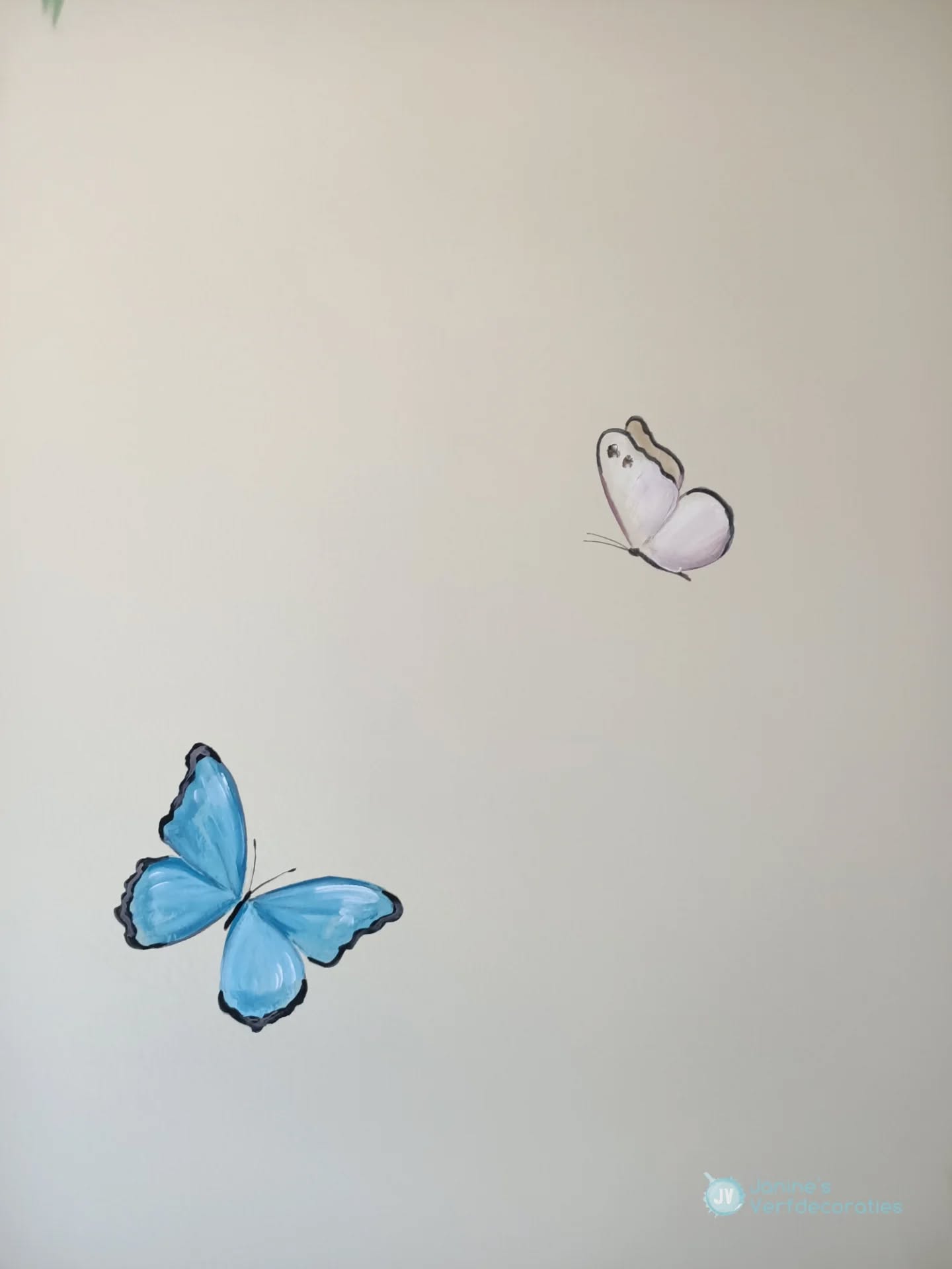 Onder de vlinders komt straks de commode te staan en aan de andere wand nog een kast, waardoor het helemaal een compleet kamertje wordt.